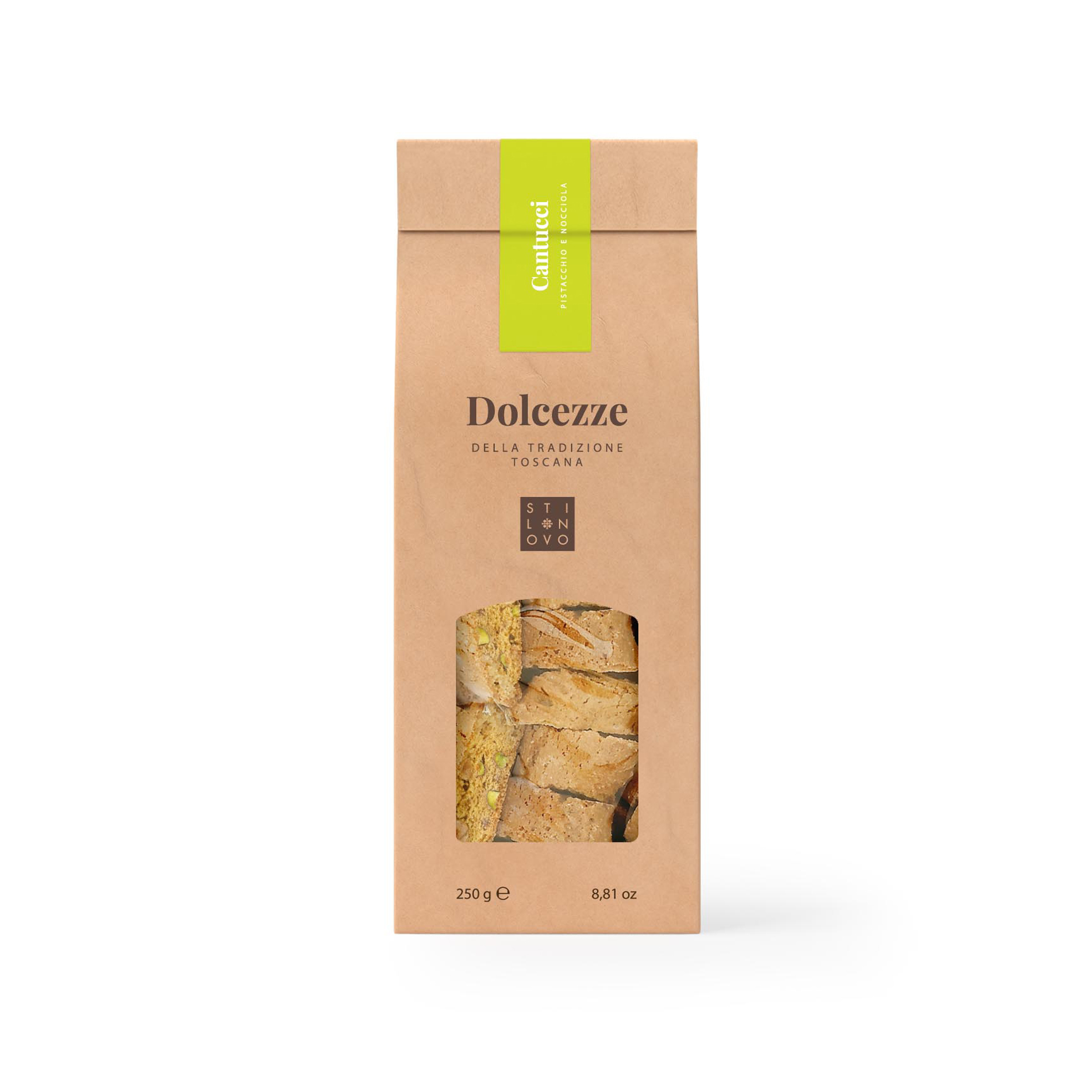 I Cantucci Pistacchio e Nocciola rappresentano un’eccellenza della gastronomia toscana, dove le nonne, le mamme e le zie si sfidavano a chi creava l’impasto più perfetto per deliziare i propri cari con le golosità della tradizione. Questa prelibatezza è composta con cura, utilizzando ingredienti di prima qualità come la farina di frumento di tipo 0 che conferisce consistenza, lo zucchero che dona dolcezza, l’uovo e il tuorlo che apportano morbidezza, le nocciole tostate al 5% che regalano croccantezza, i pistacchi al 3% che aggiungono un tocco di freschezza, il burro che dona ricchezza, il latte in polvere scremato che rende l’impasto delicato, il miele che arricchisce di profumi, l’agente lievitante (difosfato disodico, carbonato acido di sodio, amido di frumento, carbonato di calcio) che garantisce la perfetta consistenza e l’aroma vanillina che avvolge il tutto in un profumo avvolgente.
